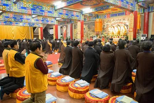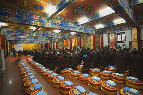 2018年1月3日,成都文殊院历时七天的精进念佛共修法会即日圆满结束。此次念佛法会从农历冬月初十(2017年12月27日)持续到冬月十七(2018年1月3日)。僧俗大众共三百余人,顶着冬日的严寒,以句句冒着热气的弥陀圣号,表达着对极乐净土的深切信愿。