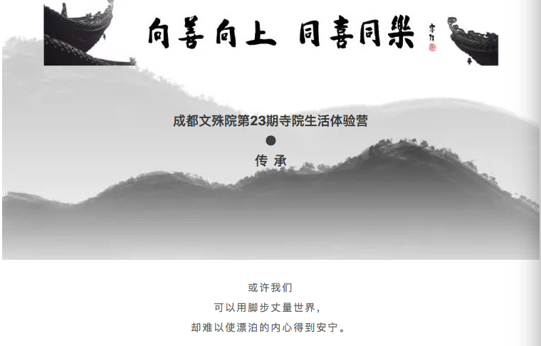 2018年成都文殊院第23期以“传承”为主题的寺院生活体验营,现在开始报名。