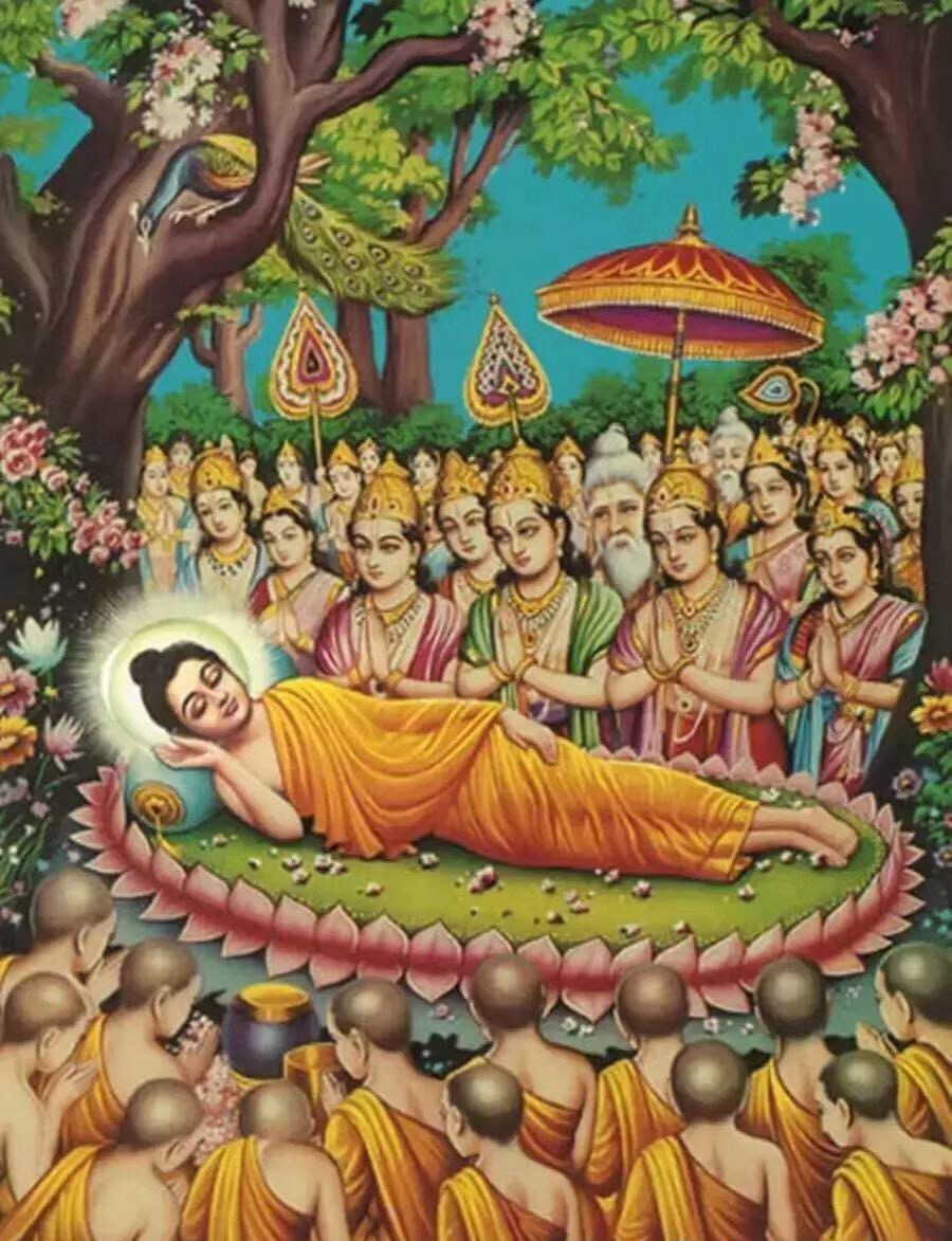 “吉祥卧”就是佛教的一种修行姿势,意即朝右侧卧躺。佛说《长阿含经》卷第三游行经记载:“尔时,世尊自四牒僧伽梨,偃右腋如师子王,累足而卧。”说明释迦牟尼卧着时采右侧卧姿势,世上许多卧佛佛像也都是右侧卧姿。